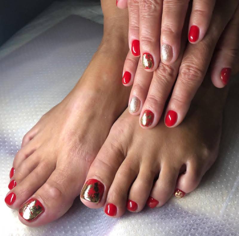 Единственная оговорка по поводу одинакового дизайна – он не должен быть абсолютно идентичен. Выполните схожий дизайн ногтей с одинаковыми акцентами на руках и ногах, используйте одинаковые оттенки гель-лака. Особенно актуален идентичный дизайн в летних образах.