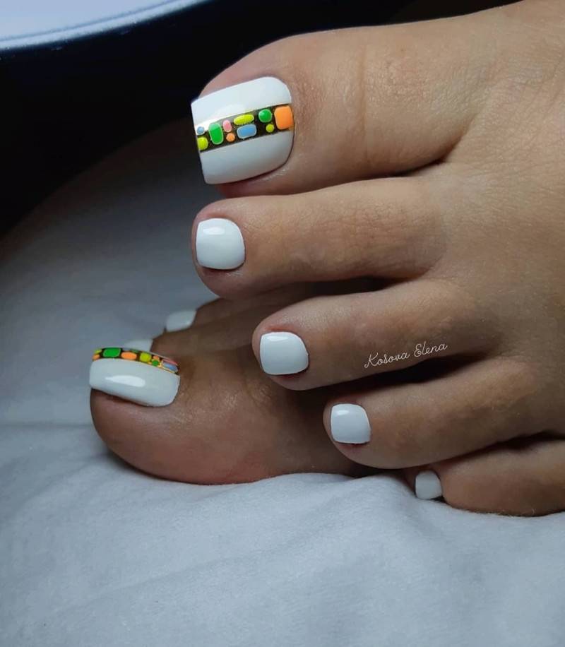 Активно применяется не только в маникюре, но и в дизайне педикюра, всем известная техника френч, которая порадовала оригинальными новинками теплого сезона. Данная техника нейл-арта уже на протяжении длительного периода занимает ведущие позиции в мире моды, расширяя спектр своих вариаций – от классического френча до использования разных цветов декоративного лака, стразов, блесток для оформления ноготков. 2021 год – это также период, в котором французский педикюр находится на волне популярности.