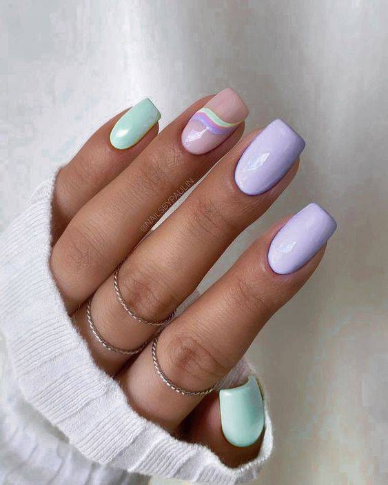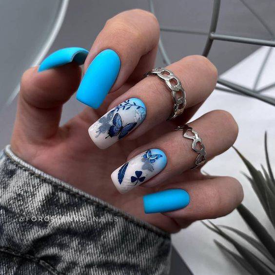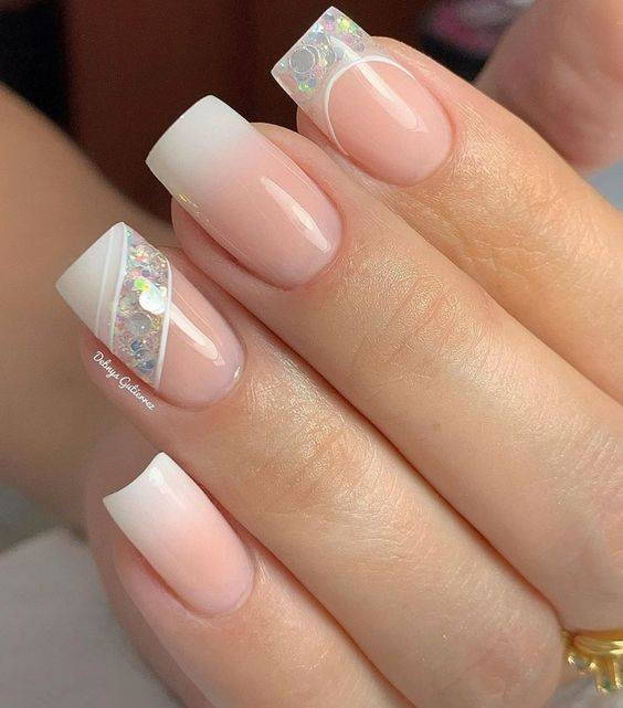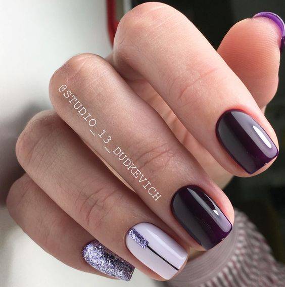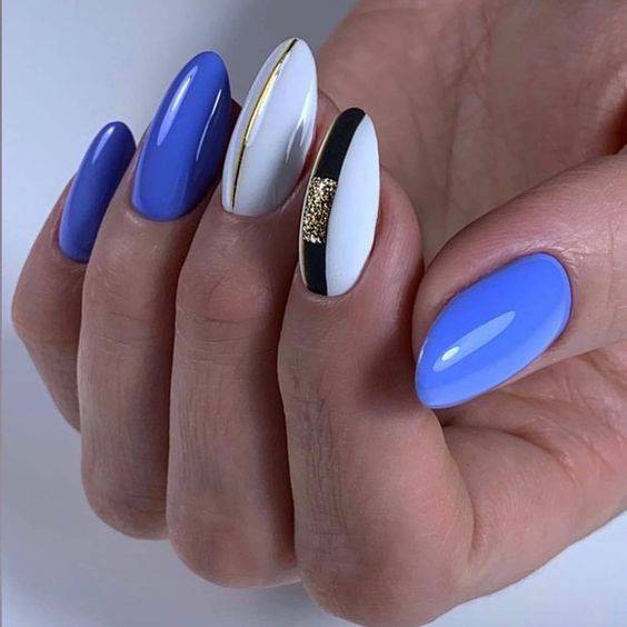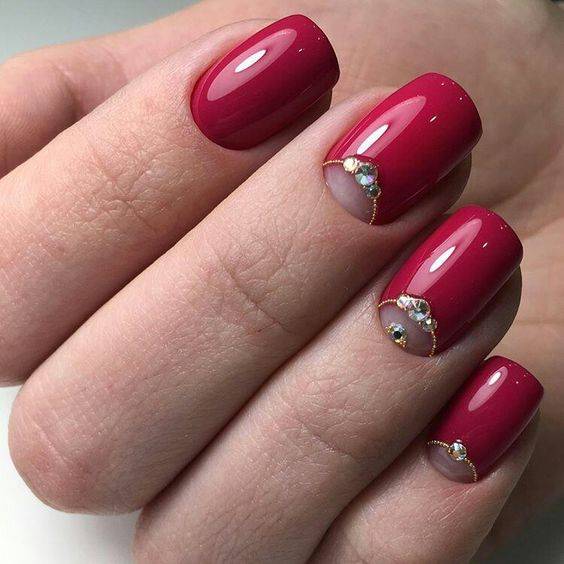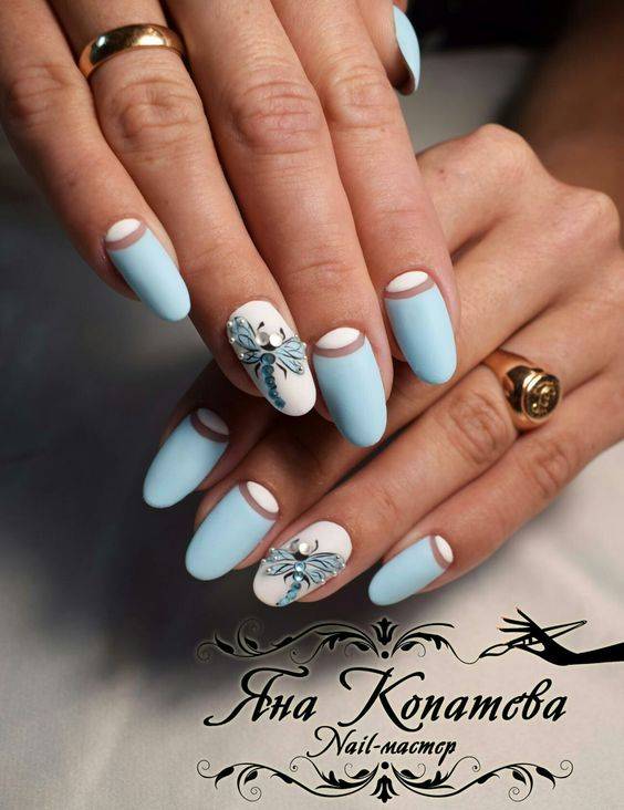 Стоит попробовать небесно-голубой и голубовато-синий, ядовито-красный и розовый, бежевый и кремовый оттенки. Белоснежный оттенок с причудливыми стразами или нежными блестками будет выглядеть элегантно. Такой простой дизайн подходит как для офиса, так и для повседневной носки. Выбрав этот вариант, вы можете больше не сомневаться в его привлекательности.