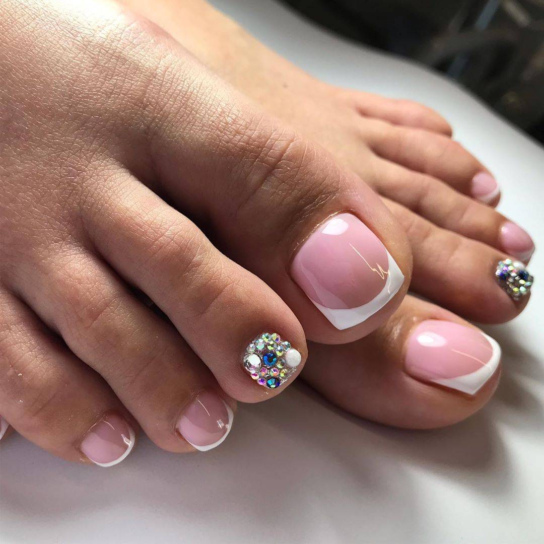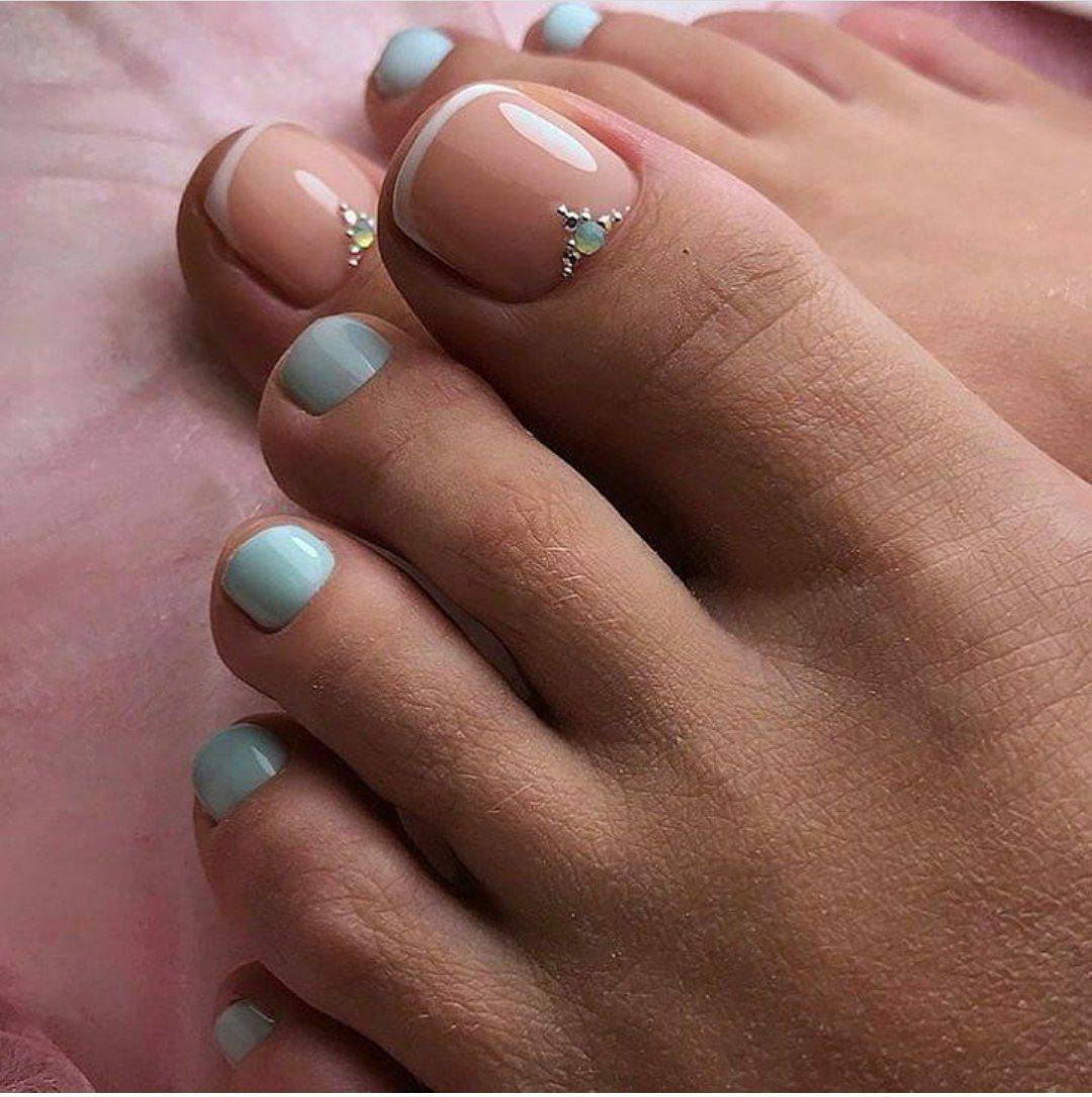Френч – тот вариант, который подходит девушкам, которые хотят иметь на ножках дизайн, подходящий под любой образ. Французский маникюр в классических светлых тонах – лучшее, что можно придумать для создания стильного современного образа. Помимо розового цвета на ногах отлично смотрится черный, бордовый, синий педикюр. При этом дизайн лучше не нагромождать сложным и объемным декором. Во-первых, на ногах он будет попросту не заметен, во-вторых, объемные детали будут мешаться при носке закрытой обуви.