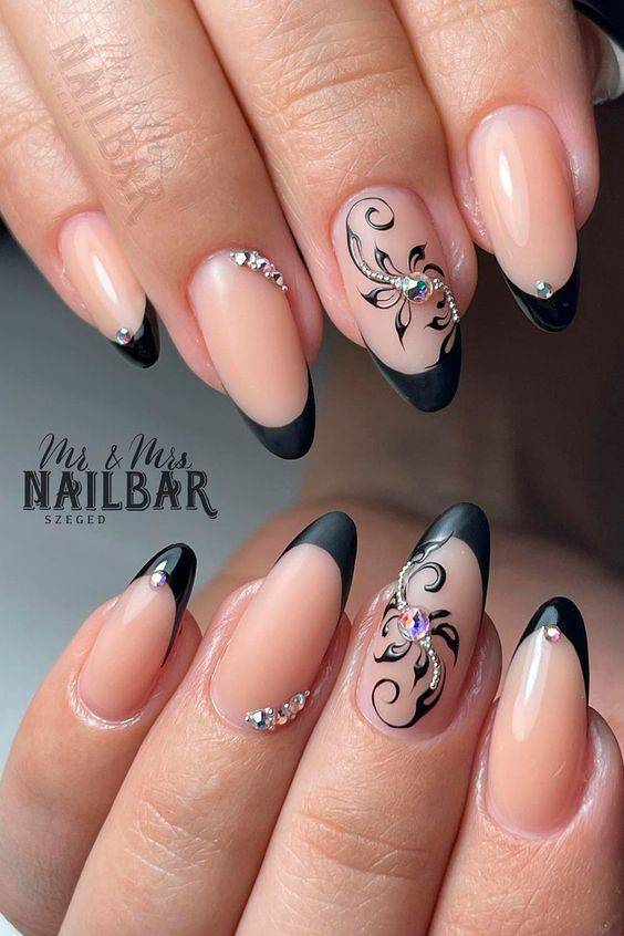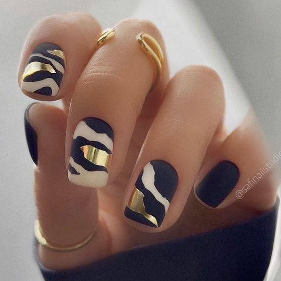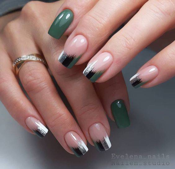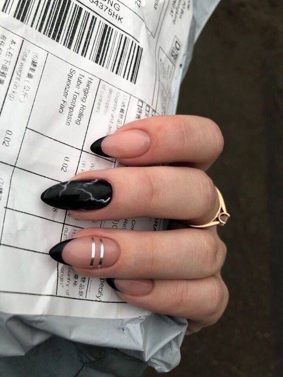 Очень модным на ногтях будет сочетание черно-белых узоров с красивым и замысловатым переходом от одного цвета к другому с использованием оригинального градиента.
