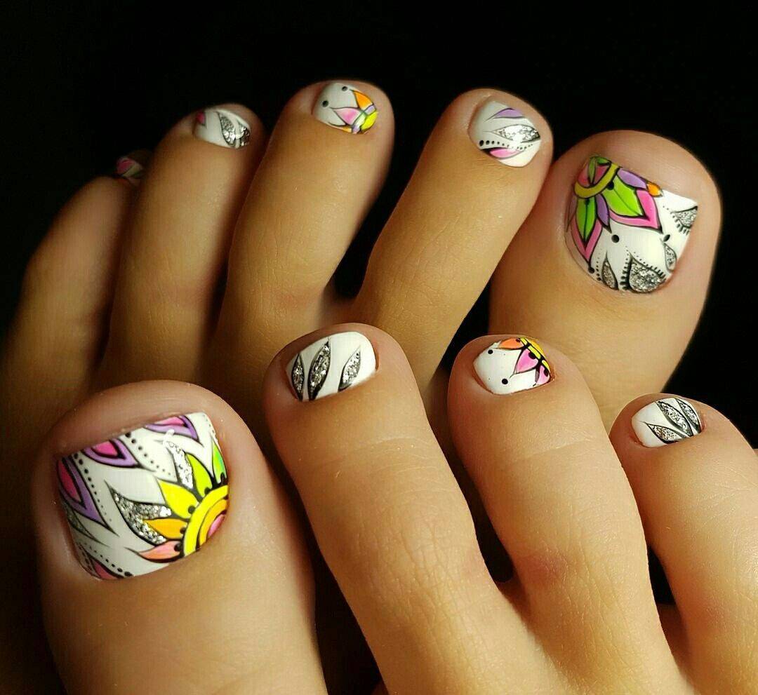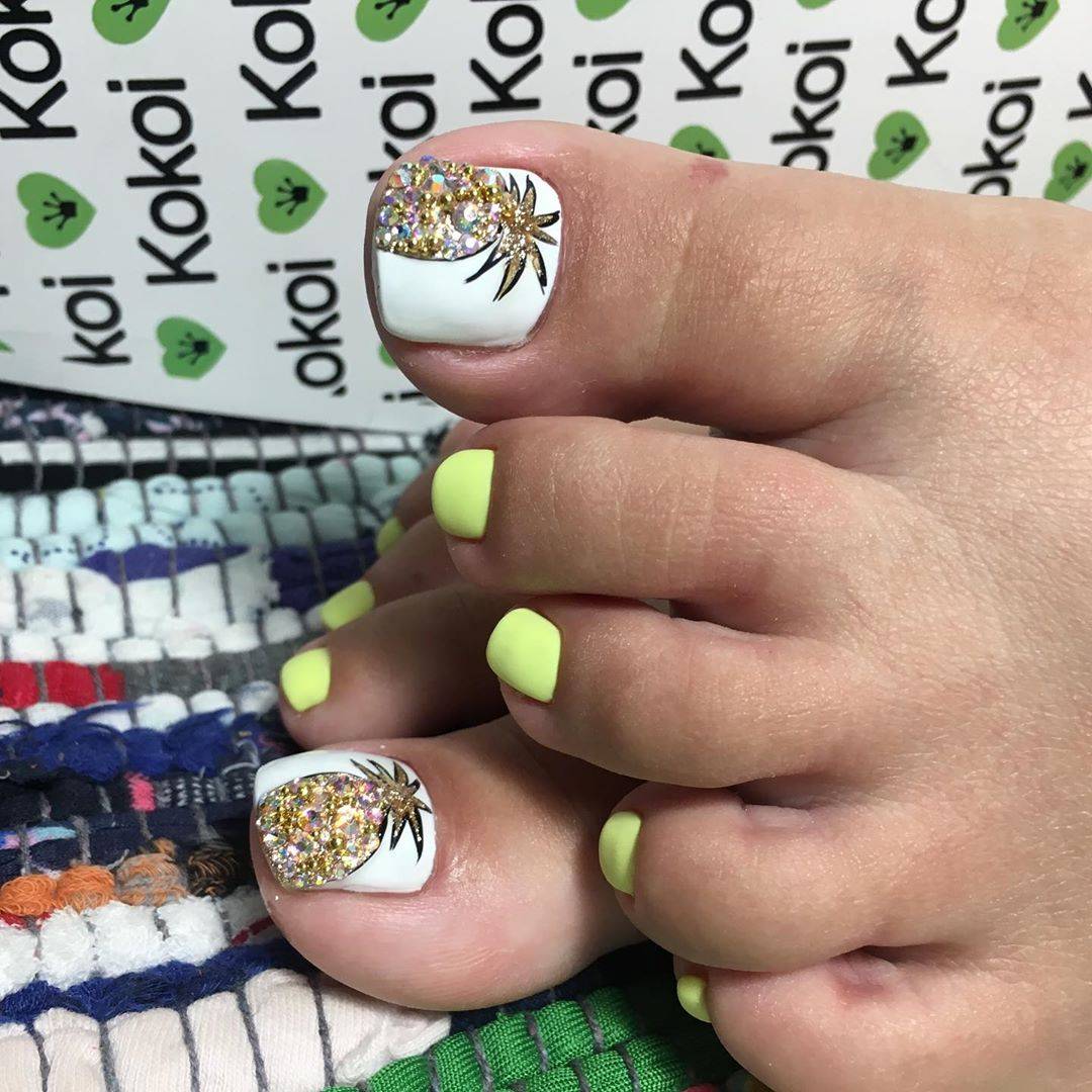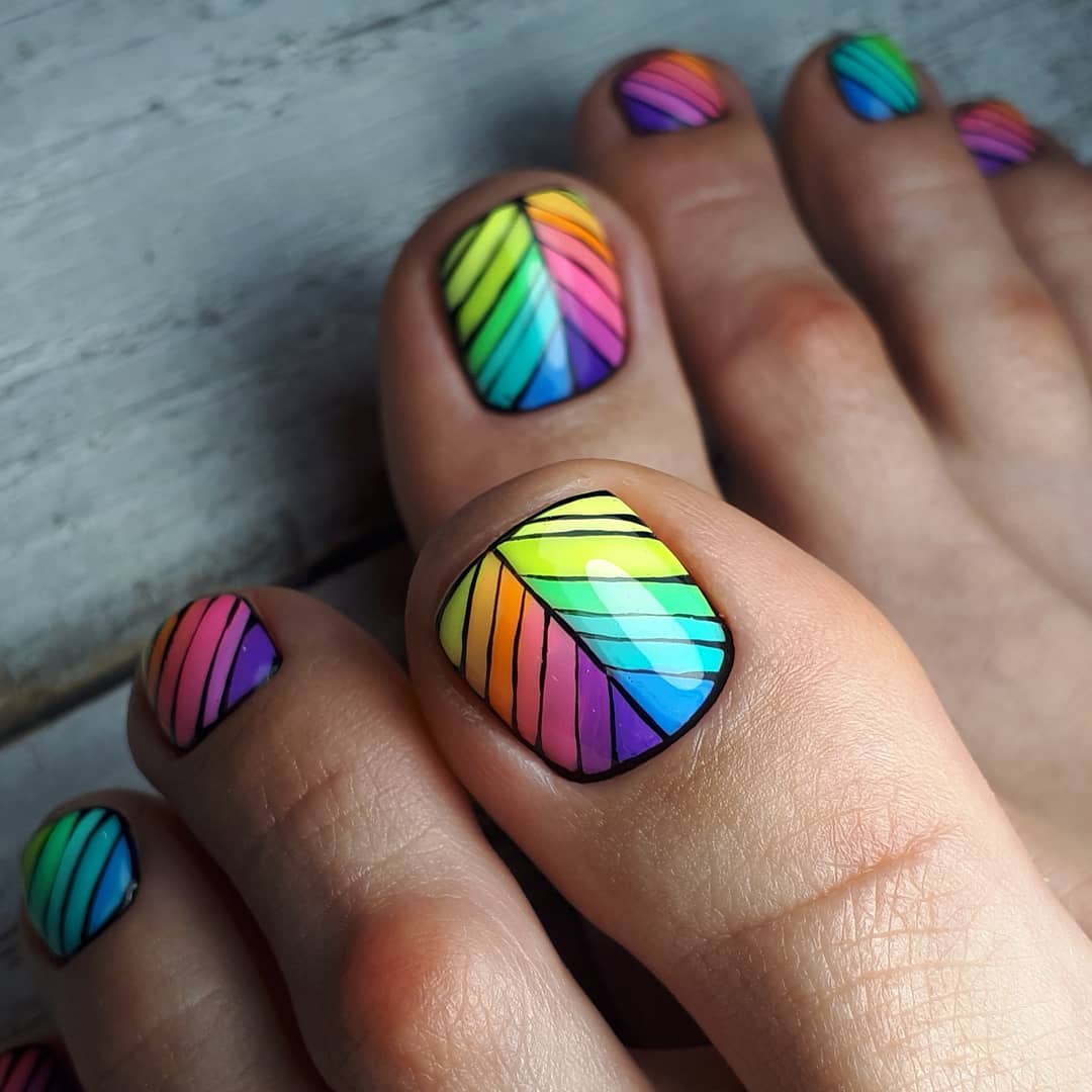 Для дополнительной красоты педикюр часто делают в виде горизонтальной полоски, французской линии или совершенно абстрактного рисунка, просто смешивая цвета иглой перед тем, как подержать пальцы ног в ультрафиолетовой лампе. Линии лучше всего наносить тонкой кистью. Затем наносится основа в 2 слоя. Затем наносится собственно рисунок, который должен хорошо высохнуть.