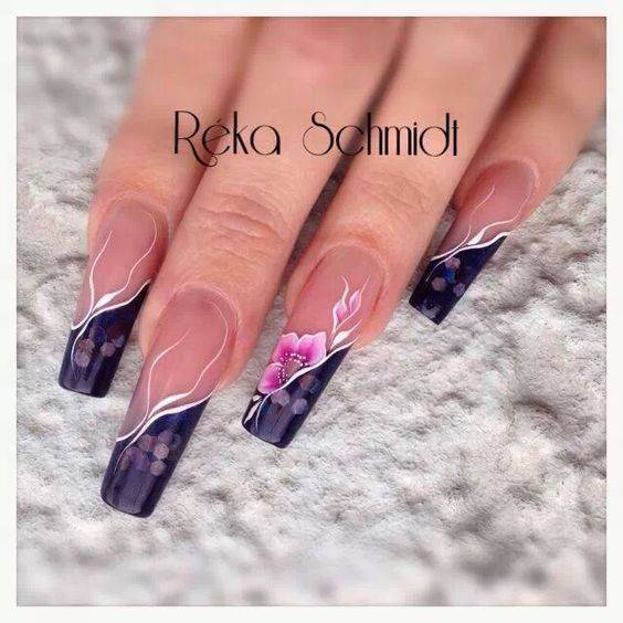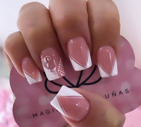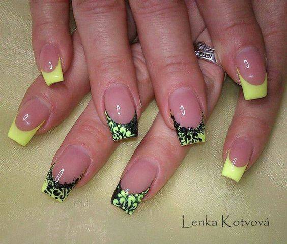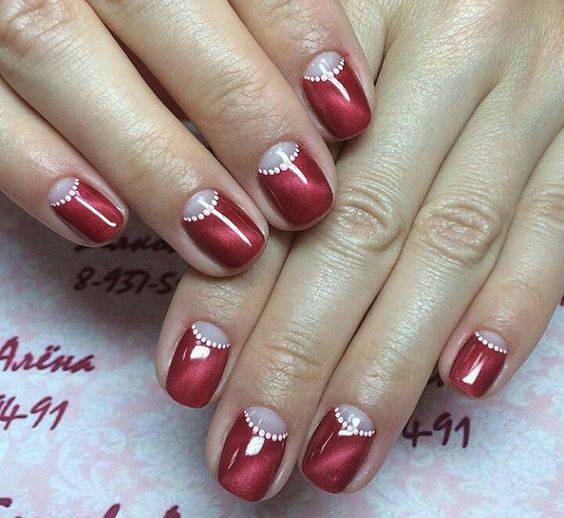 Лунный педикюр Shellac — один из самых распространенных, поскольку он всегда выглядит очень элегантно. Лучше всего выбрать 2 наиболее контрастных цвета, один из которых может быть почти прозрачным или блестящим серебристым. Существует множество вариантов цветов для этого дизайна. Очень аккуратно и креативно на ногтях будет смотреться кружевной «френч», особенно если дополнить его различными декоративными элементами