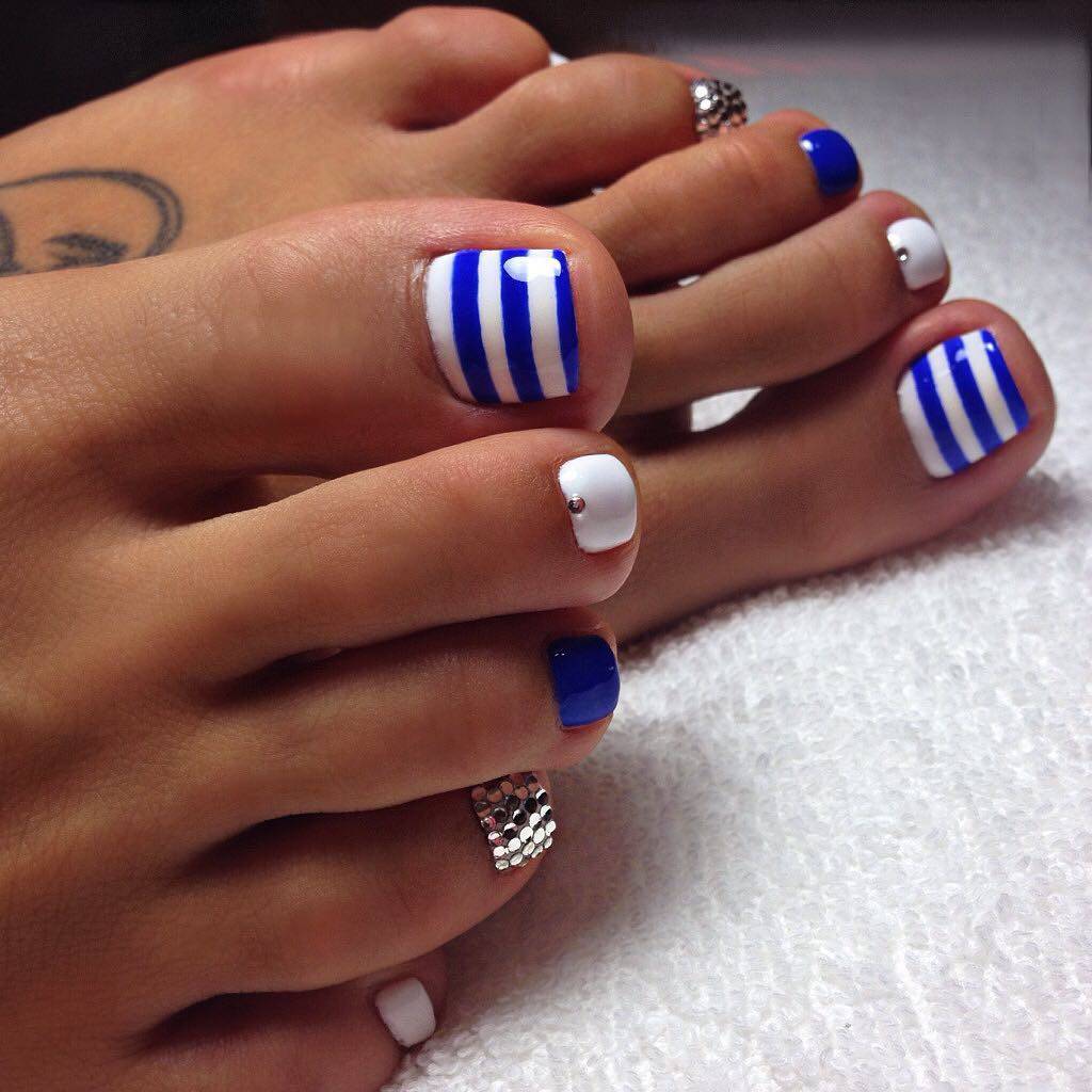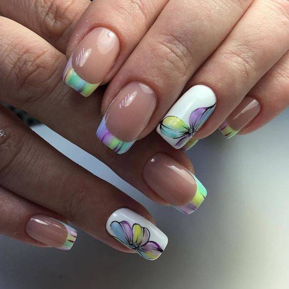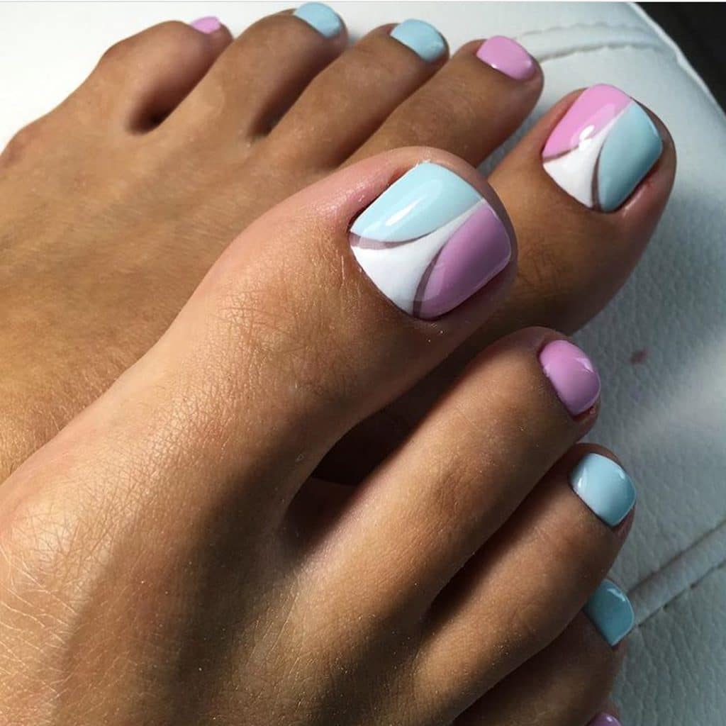 Помните, что яркие цветовые сочетания лучше всего смотрятся только на пальцах рук и ног — для педикюра они не подходят. Отличной идеей будет выбрать «французский». Для лета можно выбрать оригинальный цветной французский педикюр. Его часто наносят на основу тонким или цветным лаком. Элегантно можно сочетать с белым цветом «французские» элегантные оттенки загадочного синего и зеленоватые тона.