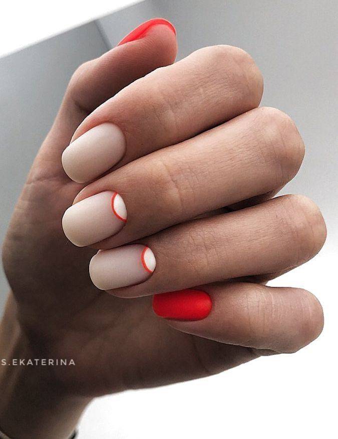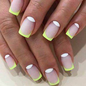 На коротких ногтях чаще выполняют однотонное или светоотражающее покрытие. Беспроигрышным вариантом может стать френч с нестандартной цветовой гаммой или формой улыбки, обратный френч.