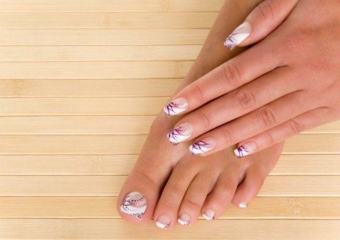 Активно применяется не только в маникюре, но и в дизайне педикюра, всем известная техника френч