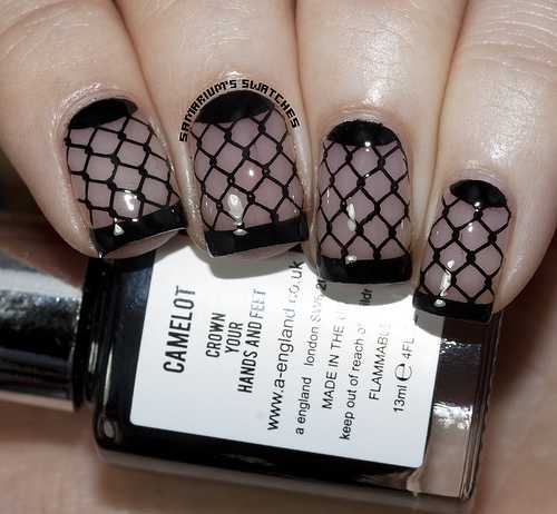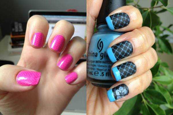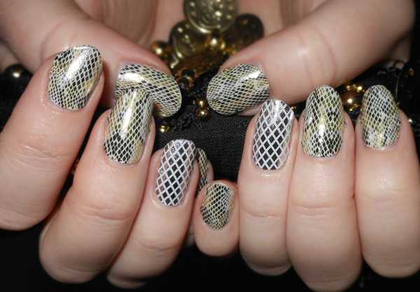 Наклейки. Можно найти в продаже наклейки с изображением сетчатых узоров. Тонкие пленки очень легко переносятся на ногти.