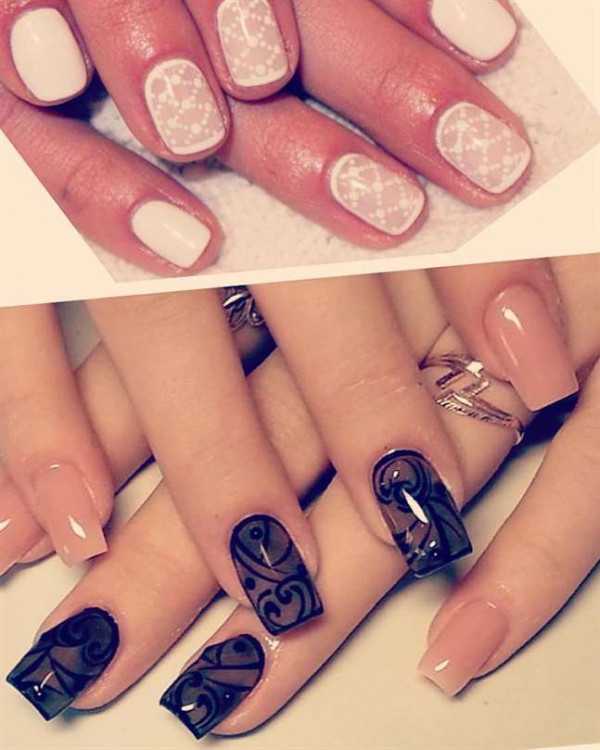 Дизайн необходимо делать на ухоженных ногтях совершенной формы. Тонкие линии ажурных узоров смотрятся очень изящно, а это никак не сочетается с грубой обработкой свободного края или кутикулы.