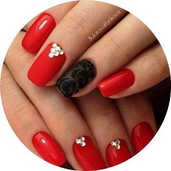 Используйте для маникюра бордовый, вишневый, гранатовый цвет, то есть глубокие, не кричащие оттенки. Если вы все же предпочитаете алые тона, то используйте для создания дизайна матовые гель-лаки. Они сгладят чересчур броский дизайн, сделают маникюр более повседневным.