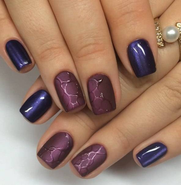 В особом тренде следующие оттенки: красные; зеленые с малахитовым эффектом; темно-синий; черный; золотой; розовый яркий; коричневый; каштановый. Особо интересна такая техника в вишневых, фиолетовых и сливовых оттенках.