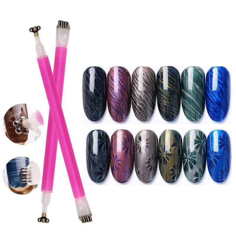 В продаже имеются магнитные ручки с разными насечками, что позволяет создавать разнообразные рисунки на ногтях
