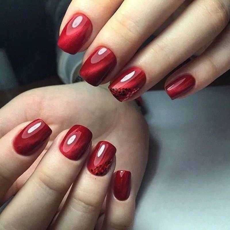 Красные ногти всегда привлекали внимание. Техника кошачий глаз предполагает использование этого цвета в нескольких вариациях: