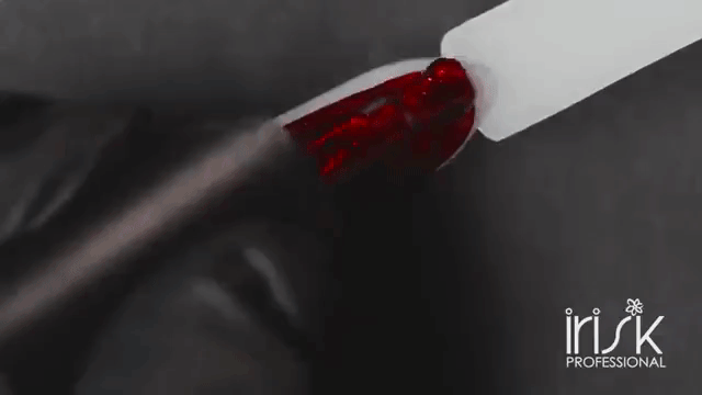 - Красная пыль. В качестве основы могут использоваться различные оттенки. Сверху же наносится «красная пыль», показывающая ноготок ровным слоем и обеспечивающая интересный рельеф пластины.