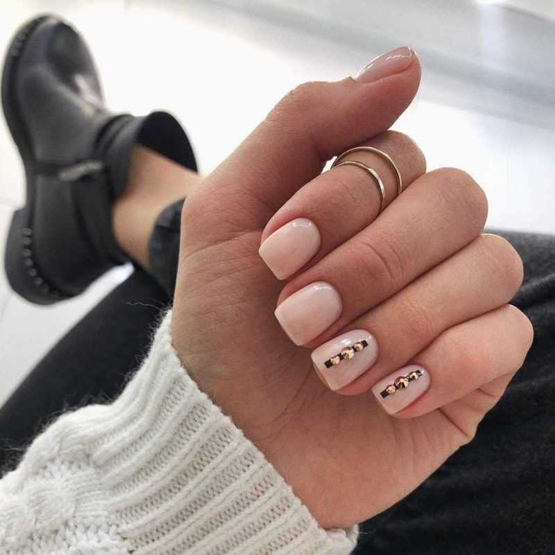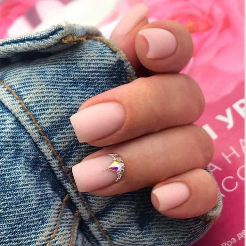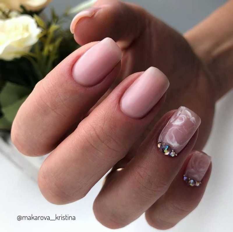 Красивый маникюр на 1 сентября. Нюдовый маникюр гель-лак с жидким камнем.