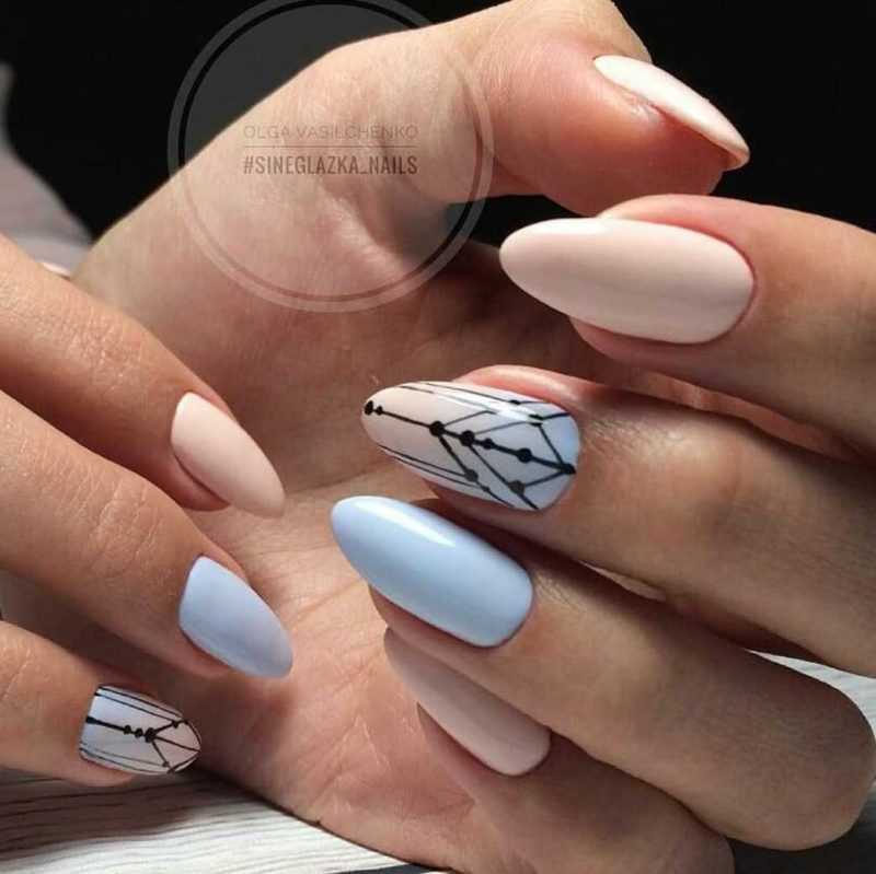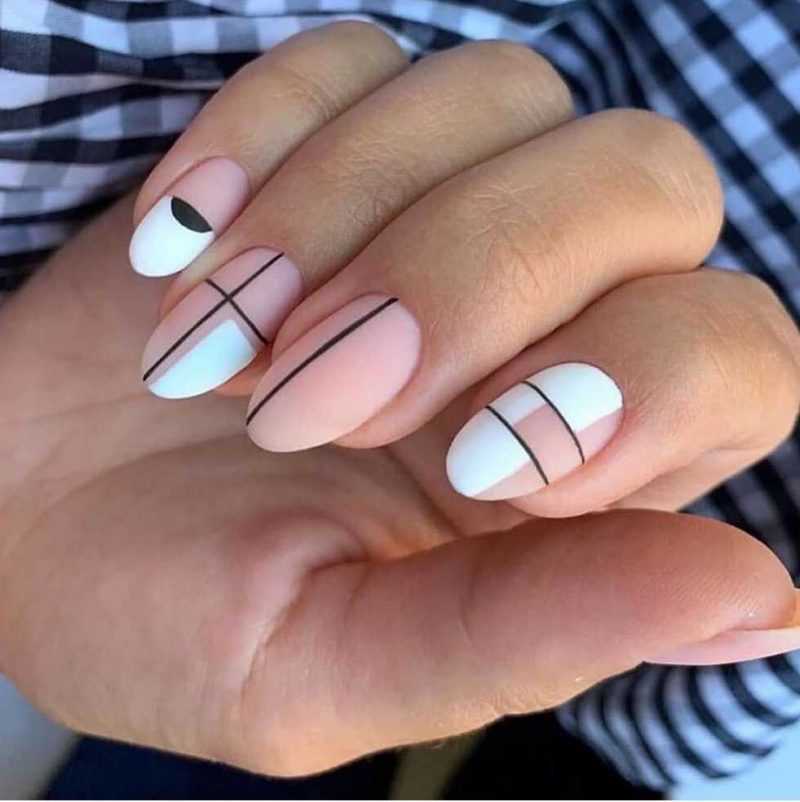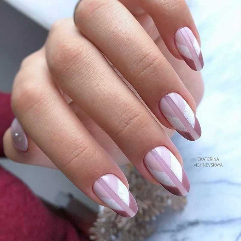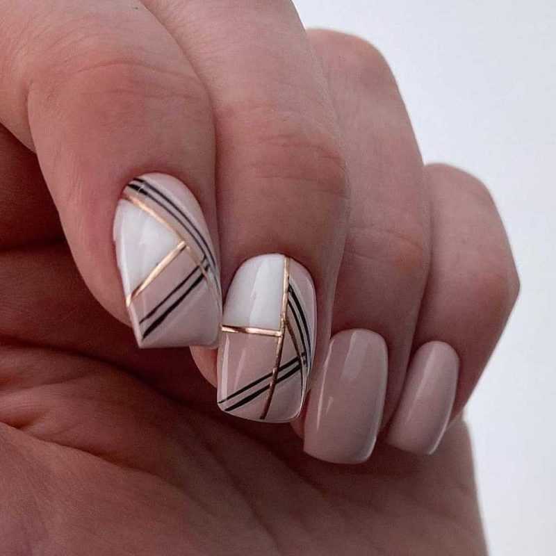 Остается в тренде и маникюр с геометрическими фигурами. Такой маникюр несложно сделать и самостоятельно, главное — проявить фантазию.