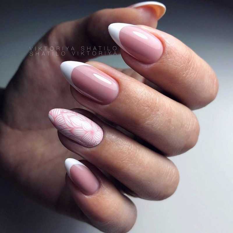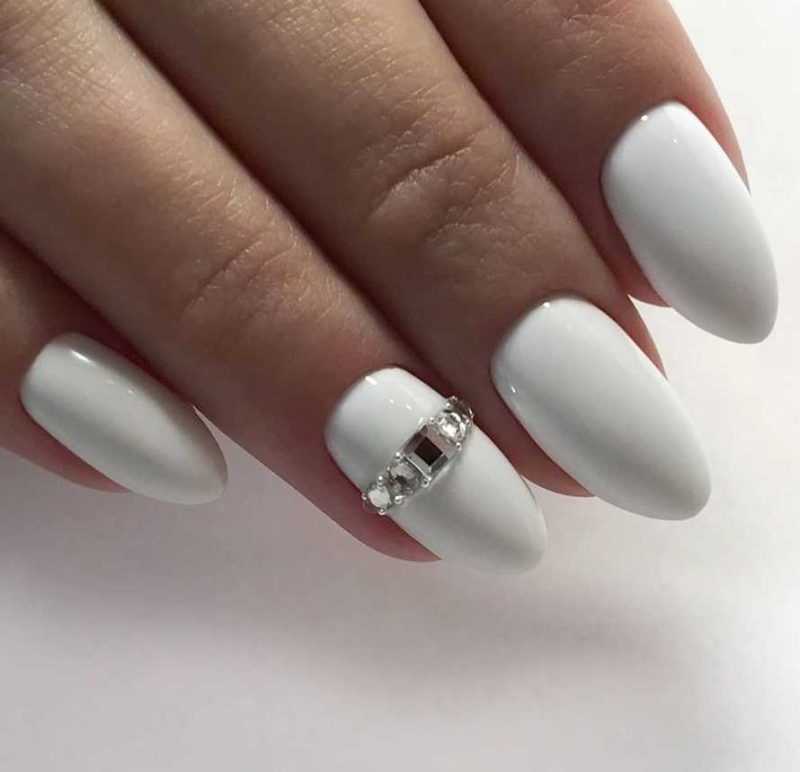 Маникюр на 1 сентября нежный. Красивый белый маникюр на миндальные ногти с объёмным рисунком.