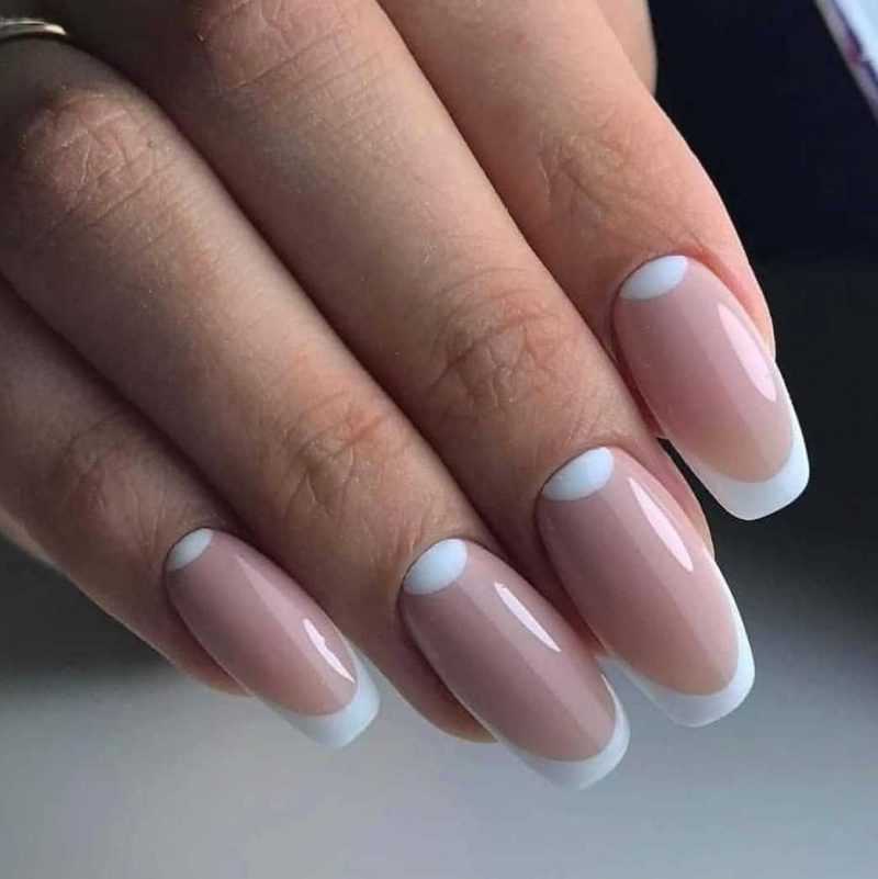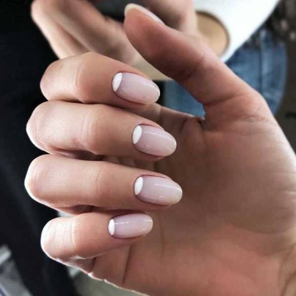 - Лунный френч. Такой маникюр на 1 сентября на короткие ногти будет выглядеть отлично. Вы не отступите далеко от классики, но и не будете выглядеть банально. Для его исполнения возьмите белый и нежно-розовый или песочный оттенок лака. Белым цветом прорисуйте лунку ногтя, а вторым оттенком заполните оставшуюся часть, в завершении покройте ноготки финишным покрытием.