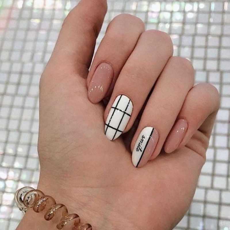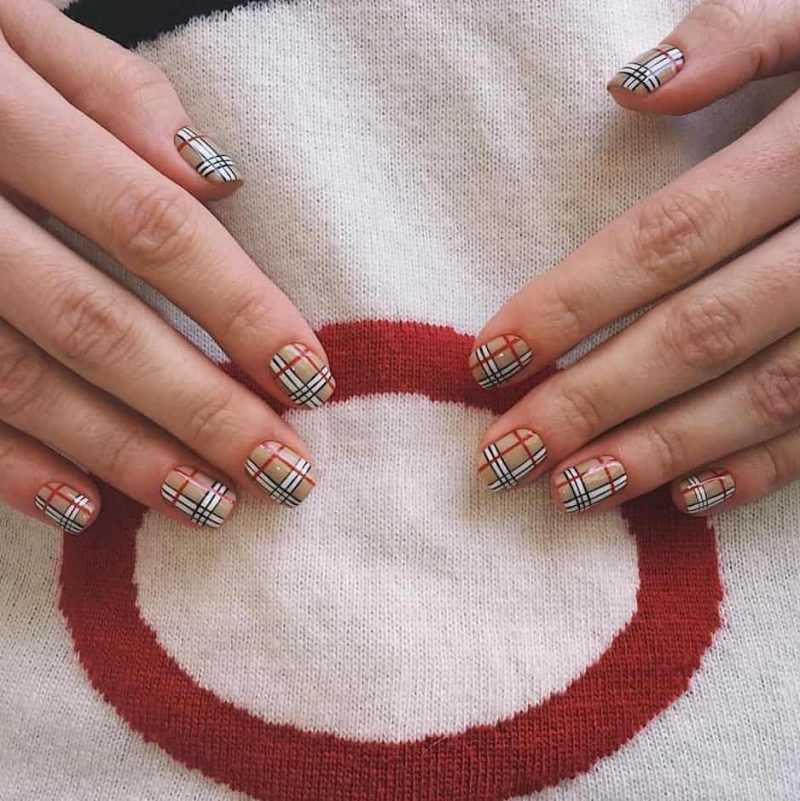 - Маникюр с рисунками. К празднику 1 сентября можно украсить ногти, изобразив на них неяркие картинки – иллюстрации цветов, лепестков, бабочек и другие узоры. Рисунки можно делать тонкой кисточкой, дотсом или с помощью набора для стемпинга. В качестве основного покрытия желательно использовать прозрачный лак или приглушенные пастельные тона. Если в школе введен дресс-код на одежду, картинки на ногтях могут повторять узор материала. Очень красиво смотрится дизайн с нежным рисунком шотландской клетки. Чтобы маникюр не стал поводом для замечаний со стороны учителей, на 1 сентября украсьте узором только 1-2 ноготка.