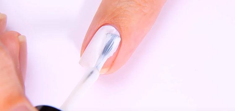 - Повторно нанесите базовое покрытие на весь ноготь тонким слоем. Просушите 60 секунд.