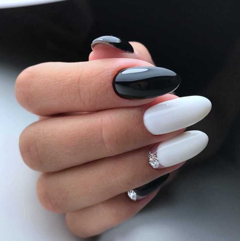 Разместите стразы около кутикулы или блестящие акценты, к примеру лунки и линии. Также замечательно выглядит растяжка из блесток, плавно сходящая на нет.