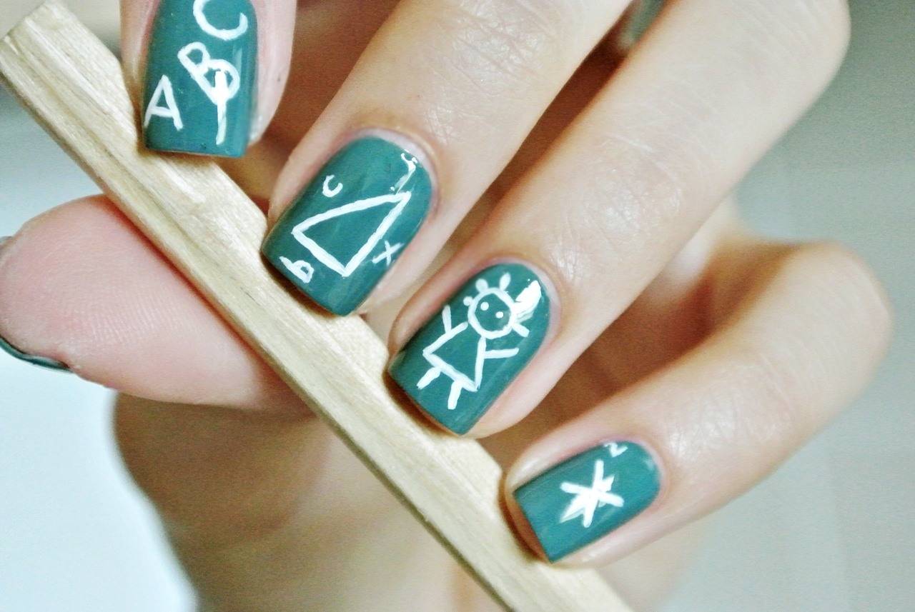 Актуален и маникюр-газета. Такой маникюр 100% оценит по достоинству любой учитель. Кроме того, учителям придется по душе маникюр со стилизацией под тетрадные листы.
