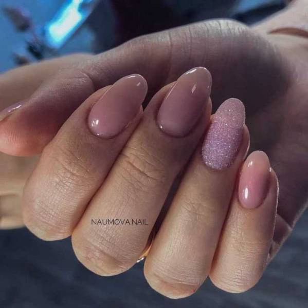 - Максимум, что можно использовать- серебристый или золотистый глиттер, но им не стоит покрывать все ноготки, а можно лишь сделать ненавязчивый акцент, покрыв им один из пальчиков.