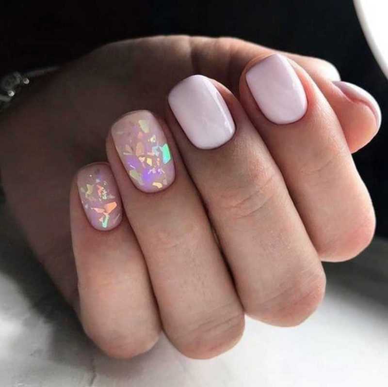 Фольга используется для создания уникальных рисунках и для этого не обязательно иметь длинные ногти. Фольга бывает разных видов: голографическая, с тиснением, с гравировкой. Можно полностью покрывать ногти фольгой, а можно сделать на конце пластины полоску из фольги, чтобы смотреться элегантнее.