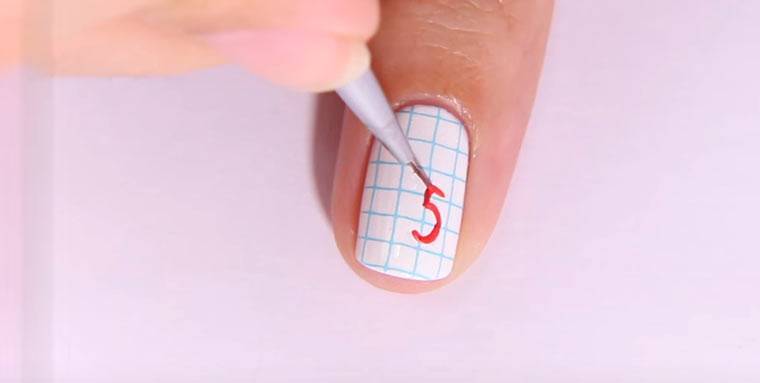 3. Когда подсохнет, то белым лаком рисуйте квадратный корень, а в нем цифру 9.