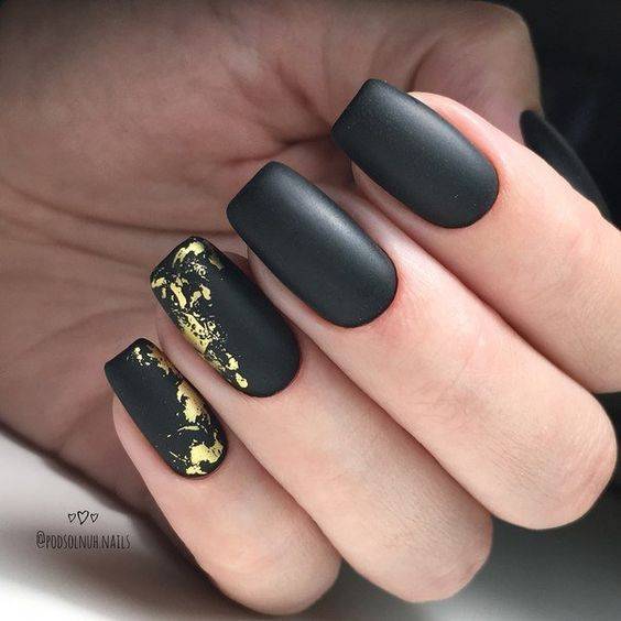 Фольга — просто и доступный вариант сделать маникюр индивидуальным и более броским. Можно выделить один ноготок фольгой или сделать небольшие акценты на паре пластин. Отлично смотрится фольга на маникюре в цвете хаки с матовой текстурой.