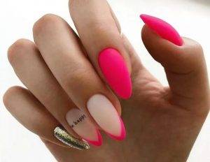 Повторить такой маникюр не составит труда. Понадобится лишь матовый лак неонового оттенка либо дуэт обычного покрытия с матовым «финишем». Присмотревшись к тому, как кислотно-розовые и оранжевые ногти выглядят на показах Jeremy Scott, можно убедиться, что для дня рождения они подошли бы идеально, если планируете отмечать его в экстравагантном (с точки зрения цвета) образе.