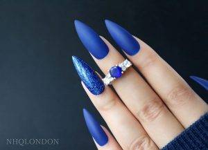 - Синий наряд не терпит маникюра в тон. Здесь нужен серебряный, серый, черно-белый вариант. Желтый, золотой, красный – в комбинированном исполнении.