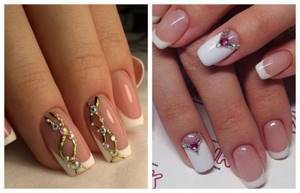 На базе френча любого цвета можно сделать праздничный вечерний нейл-арт с использованием таких приемов: