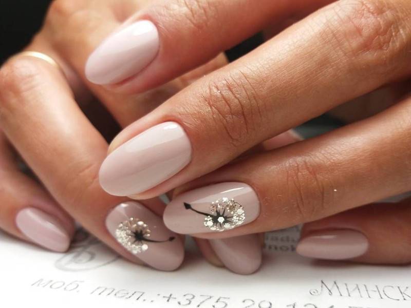 В минимализме очень популярны рисунки с флористическим дизайном. Это миниатюрные рисунки цветов, растений и веточек. Они могут быть выполнены в технике акварель или просто нарисованы кистью, при помощи черной, белой или цветной гель-краски. Также они могут быть нанесены на ноготки в виде слайдеров (наклеек), или сделаны с помощью стемпинга.