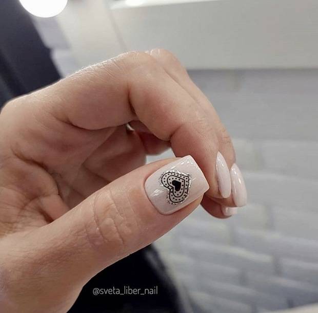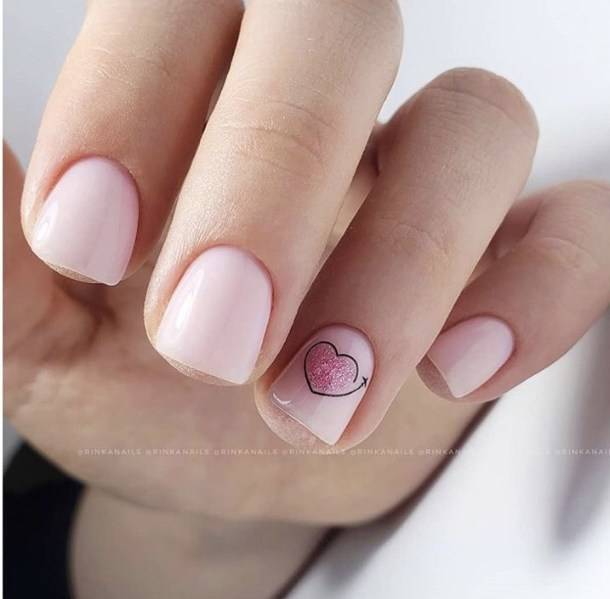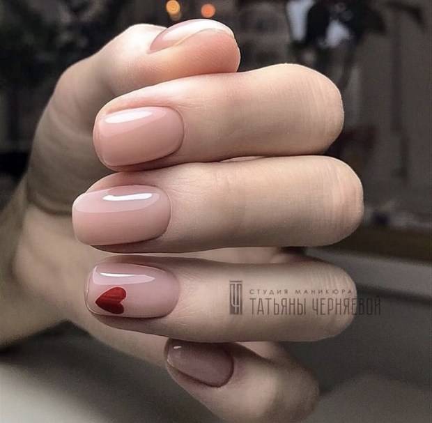 Большую популярность в минималистичном дизайне получили рисунки сердечек на одном или нескольких ноготках. Посмотрите, как мило и нежно этот вариант дизайна смотрится в разных цветовых решениях.