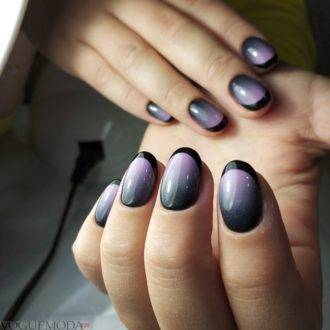 - Сложный градиент – акцент в деталях. Растяжка цвета от светлого к темному – неизменная классика, но многим она уже надоела. Сейчас популярность набирают сложные градиенты из нескольких оттенков. Исполнение может быть горизонтальным, вертикальным, диагональным.