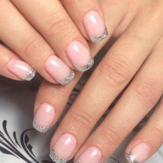 Классический французский маникюр выглядит следующим образом: ногтевая пластина покрывается неярким бежевым или пастельно-розовым тоном лака, а на кончик ногтя полумесяце наносится белый. Другим названием считается “фрэнч”.