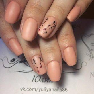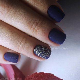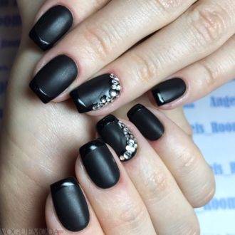 Матовый является не практичным, из-за пористой текстуры быстро грязнится, но если делать маникюр в темных тонах, то загрязнения будут почти не видны. Делая матовый маникюр на короткие ногти не стоит выбирать светлые и утонченные рисунки, лучше добавить блесток, чтобы скомпенсировать нейтральность.