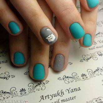 Очень популярен маникюр на короткие ногти в изумрудном или зеленом цвете.