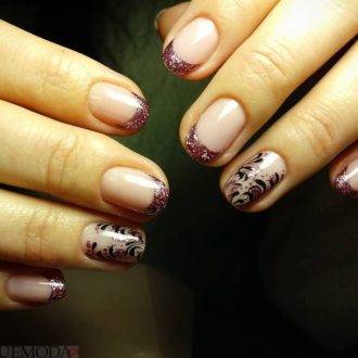 Актуальным серебристым маникюром станет «френч», в котором будет сочетаться лак с матовым и глянцевым эффектами. Золотистый цвет наиболее выгодно смотрится в комбинации с черным, поэтому любые рисунки и узоры раскроют самые лучшие стороны этого оттенка.