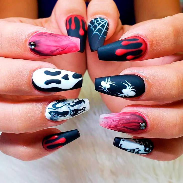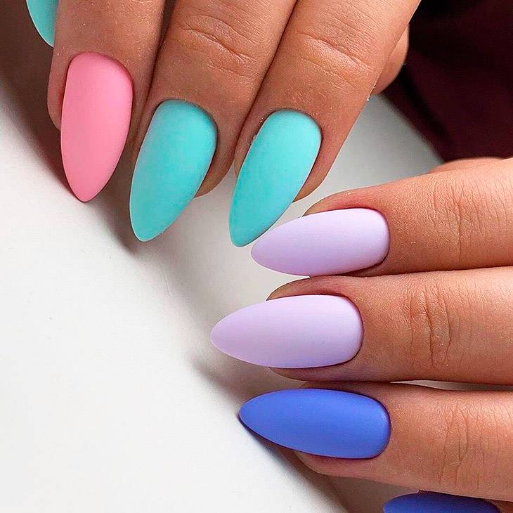Одним из трендов сезона является чередование формы ногтей. Это вариант для смелых и любящих модные эксперименты девушек. В чем заключается идея? Мастер чередует квадратную и миндалевидную форму пластины в одном маникюре. При этом нейл-мастера стараются разнообразить и сам дизайн, оформляя ноготки разной формы в отличный друг от друга декор.