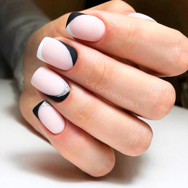 Еще один тренд сезона 2020 – черный френч, который смог сломать все стереотипы, связанные с нежным французским маникюром. Выполняется он с помощью гель–лака черного цвета, который наносится тонкой линией по краю ногтевой пластины.
