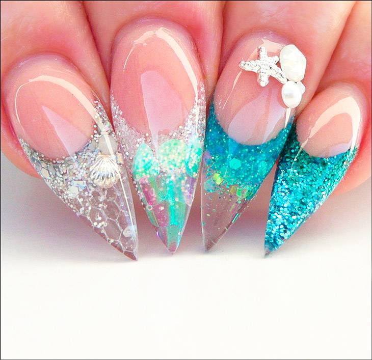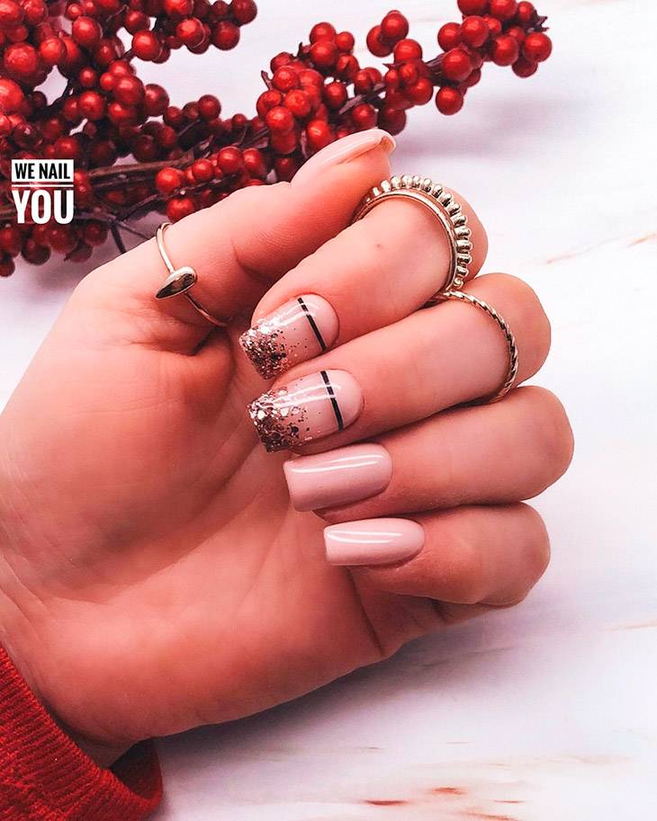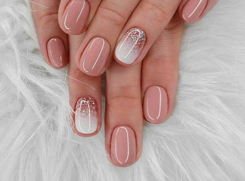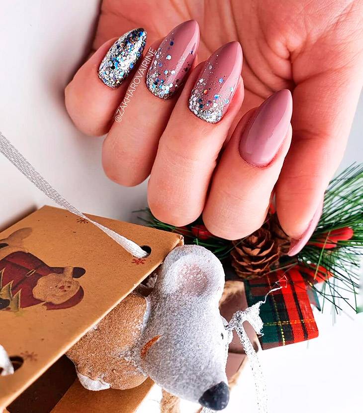 Маникюр с блестками приходится ярким акцентом в образе на коротких ногтях. Блестки, создавая интересную текстуру, не могут остаться незамеченными.
