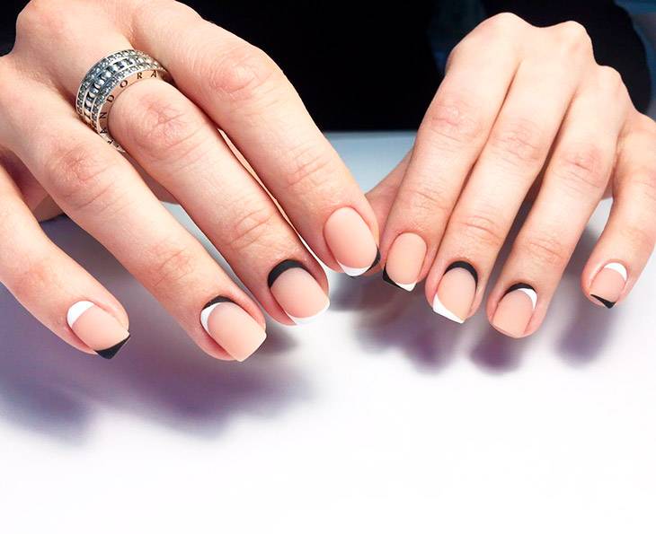 Такой тип маникюра продержится примерно пять дней. Не обязательно в полной мере следовать классической идее, можно экспериментировать с цветами, что придаст вашему облику креативности.