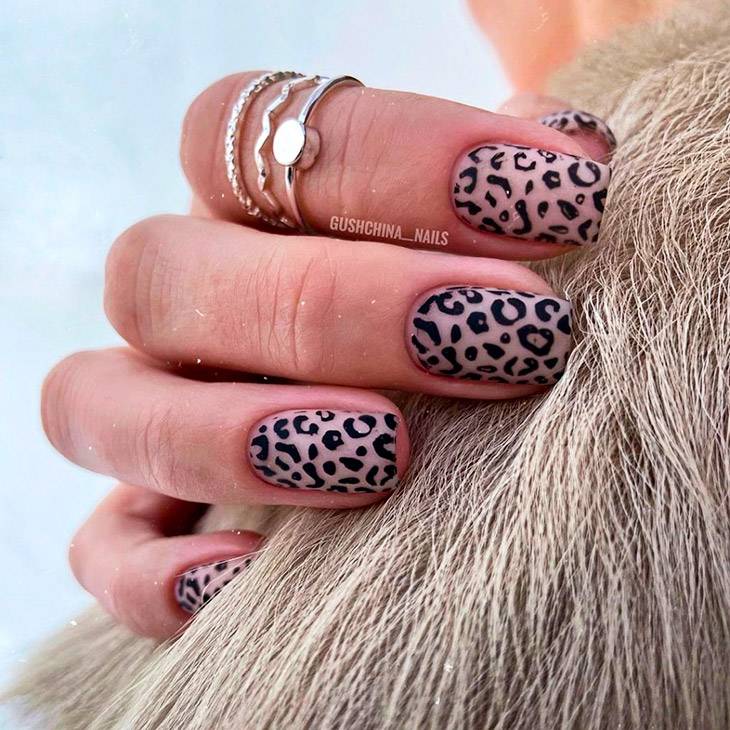 Матовый является не практичным, из-за пористой текстуры быстро грязнится, но если делать маникюр в темных тонах, то загрязнения будут почти не видны. Делая матовый маникюр на короткие ногти не стоит выбирать светлые и утонченные рисунки, лучше добавить блесток, чтобы скомпенсировать нейтральность.