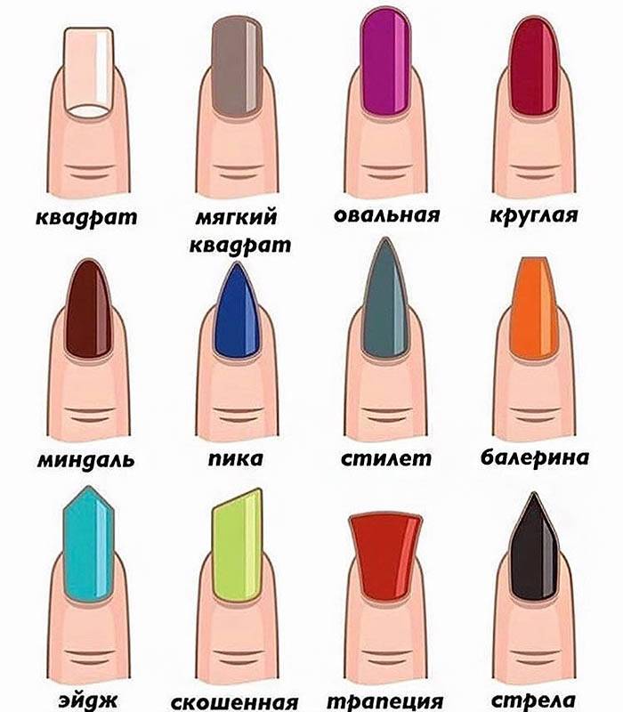 Придать ногтевой пластине можно абсолютно любую форму, но визуальное восприятие руки и кисти кардинально меняется. К примеру, толстым пальцам и коротким ноготкам мастера по маникюру не рекомендуют делать заостренную форму, т. к. это нарушает общие пропорции кисти. Зато заостренный дизайн идеально смотрится на длинных и тонких пальцах. В маникюрной индустрии выделяют 4 основных вариантов дизайна ногтей: круглый, остроконечный, квадратный, овальный.