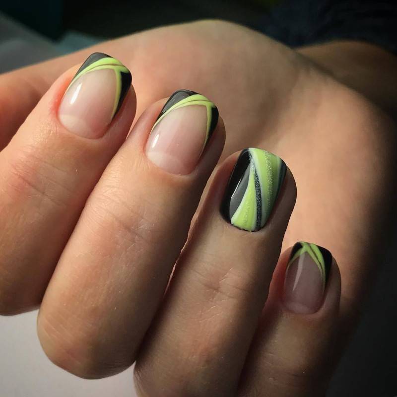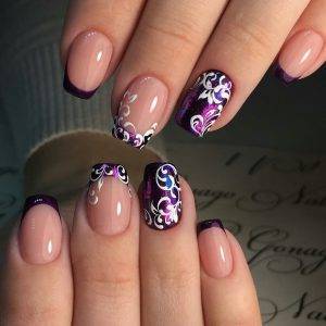 Это еще один вариант французского маникюра. В сочетание с простотой и легкостью, он обладает уникальным качеством изящества и эстетики. В соотношении белой основы с переплетающимися на ней черными узорами, такие ногти станут достойным дополнением всего образа.