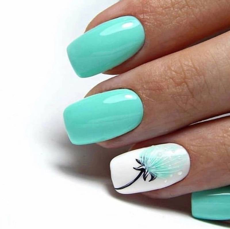 - изумрудный цвет — оригинально и благородно смотрится на коротких квадратных ногтях глубокий насыщенный. Лучше всего маникюр делать в его оттенках стоит в осеннее-зимний сезон, а если его дополнить более светлыми оттенками и цветочным узорам подойдет для весеннее-летнего периода. Особенно роскошно и эффектно смотрится маникюр в технике «кошачий глаз». Игра света на ногтях создает интересные красивые переливы, подчеркивающие форму ногтей.