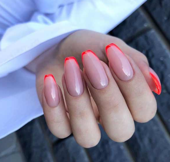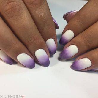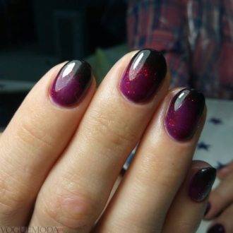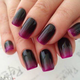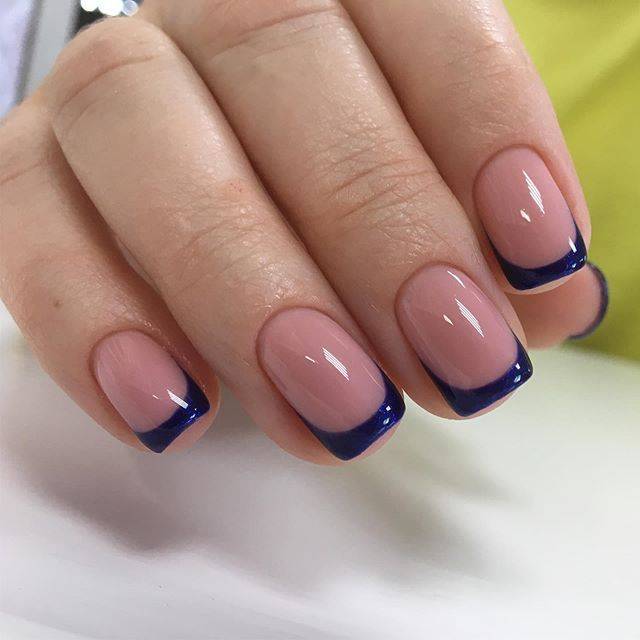 Здесь название маникюра отвечает само за себя. Омбре подразумевает окрашивание самых кончиков. В маникюре это совсем не значит, что другим цветом могут быть покрашены только концы ногтей. Другой цвет может иметь и место около кутикулы.