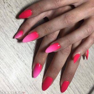 После того, как вы выбрали оттенки и предоставили мастеру свободу, он сможет нанести вам лак на ногти самыми разными способами, создавая неповторимые сюжеты и переходы. Самые популярные, это именно плавные переходы цвета на ногтях. Например, когда солнечный жёлтый плавно переходит в белый, или нежно-голубой в нежно-розовый.