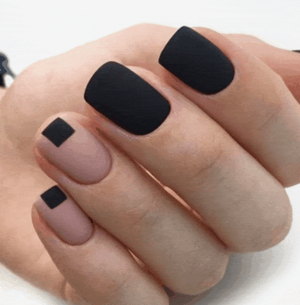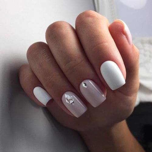 - Мягкий квадрат. Удачным решением в такой ситуации будет нюд и минимализм. Также можно нанести минималистичные узоры.